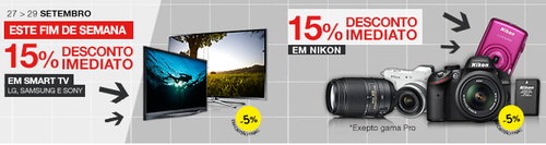 15% desconto imediato, mais 5% em cartão, na Fnac, em Smart TV, e câmaras fotográficas,