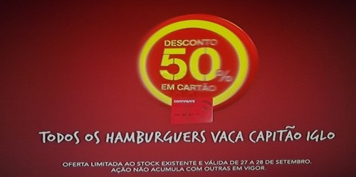 75% em Hamburguers de vaca capitão iglo, no continente, até 28 Setembro,
