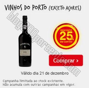 25% de desconto CONTINENTE dia 21 dezembro, vinhos do Porto,