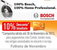 10% desconto imediato | BOSH | até 30 novembro, para pagamentos com cartão Jumbo Mais,