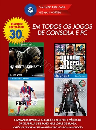 30% desconto WORTEN Aveiro e Braga de 29 a 5 maio,