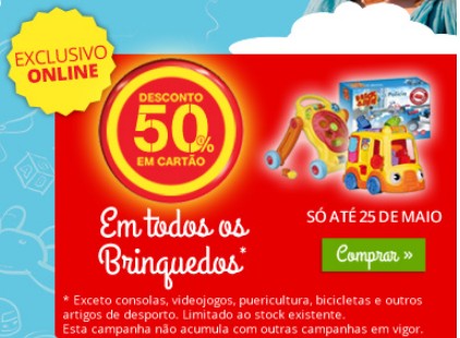 50% de desconto CONTINENTE Brinquedos até 25 maio, só online,