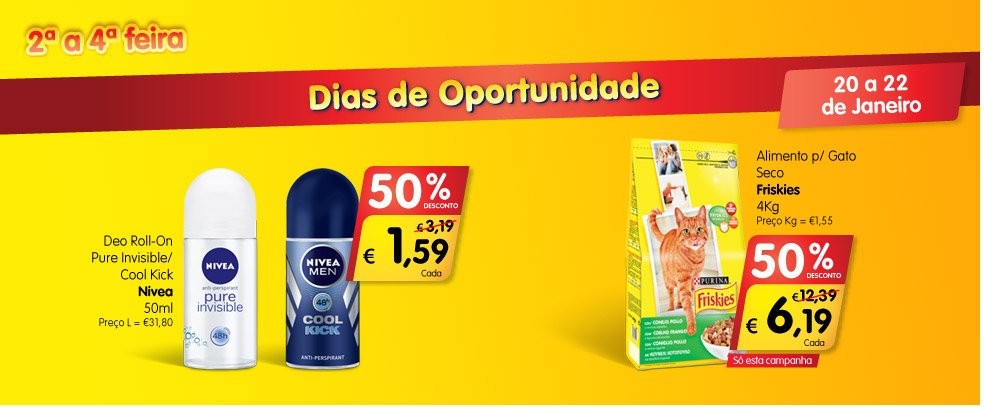50% de desconto | MINI PREÇO | de 20 a 22 janeiro,