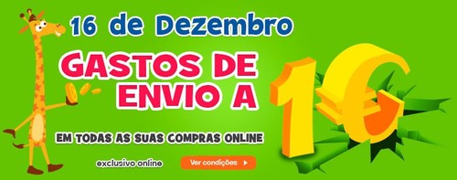 Portes a 1€ | TOYSRUS | dia 16 dezembro, hoje, em compras online,