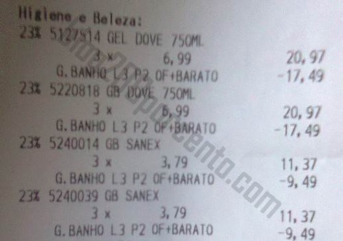 Então mas se eu levar só três geis de banho. Desculpem-me a minha burrice, porque fazendo as contas não percebo o L6P1. Ficam os seis com preço final de 3.49€? E esse Sanex a 63centimos? Obrigado pela paciência
