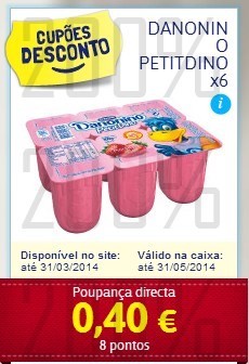 1,49€ - 0,75€ ( cupão 50% ) - 0,40€ ( vale danone ) = 0,34€ / Cada Pack,