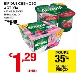 1,29€ - 0,40€ ( vales desconto Danone ) = 0,89€ / Pack,