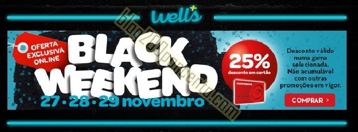 Black Weekend WELLS 25% de desconto de 27 a 29 novembro,