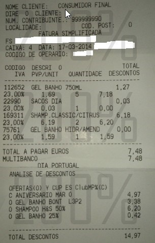 ( Talão de x de desconto em y de compras ),