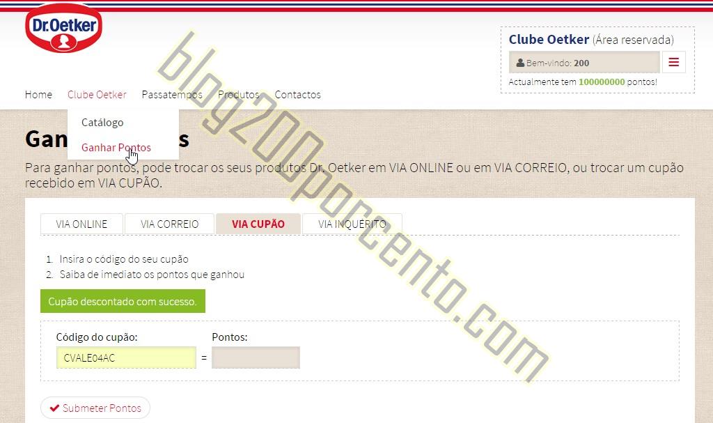 Use o cupão CVALE04AC para adicionar 5 pontos à sua conta Dr. Oetker, limitado a 1 por participante a cada 30 dias,