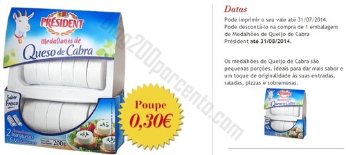 Novo vale de desconto PRESIDENT para imprimir, medalhões de queijo, Obg Emília,