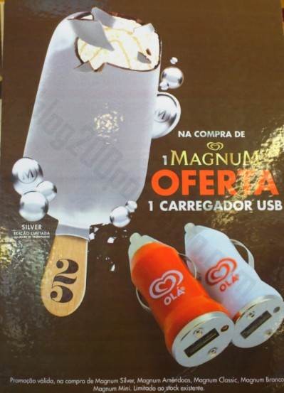 Oferta OLÁ / MAGNUM Carregador Usb, o gelado custa 1,70€ é bom para carregar as energias!,