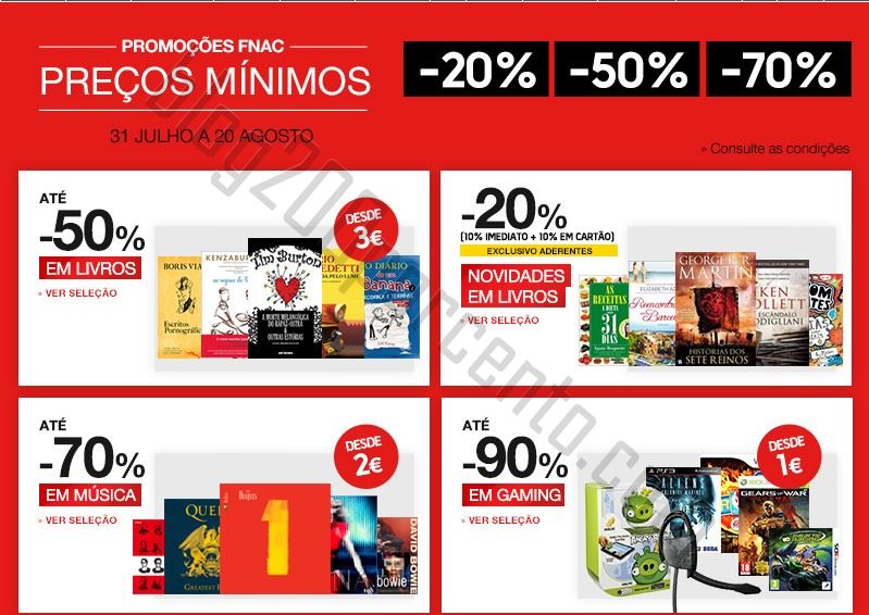 Promoções FNAC com descontos até 90% de 31 julho a 20 agosto,