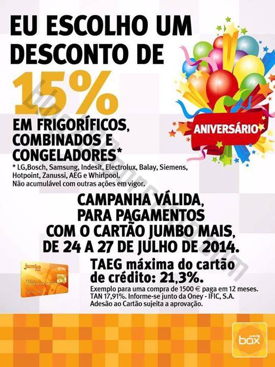 Promoções JUMBO - BOX até 27 julho, 15% de desconto,
