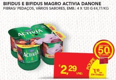 2,29€ - 1,15€ ( 50% cartão ) - 0,45€ ( Vale danone ) = 0,69€,