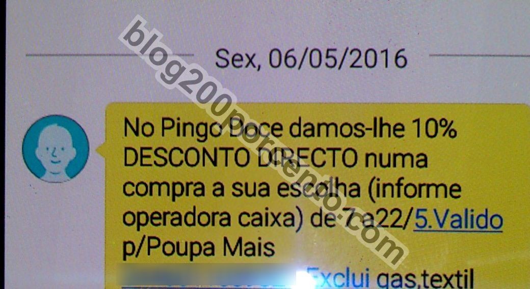SMS 10% de desconto PINGO DOCE de 7 a 22 maio,