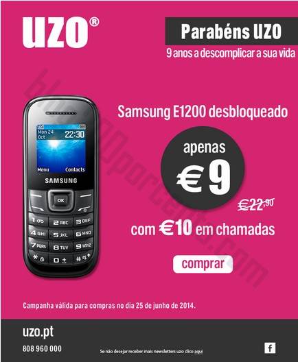 Só hoje tevemóvel UZO - 9€ com 10€ de saldo,