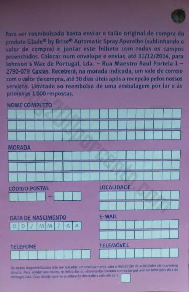 Reembolso GLADE automatic spray, aistado no Continente,